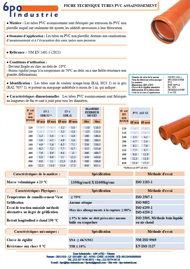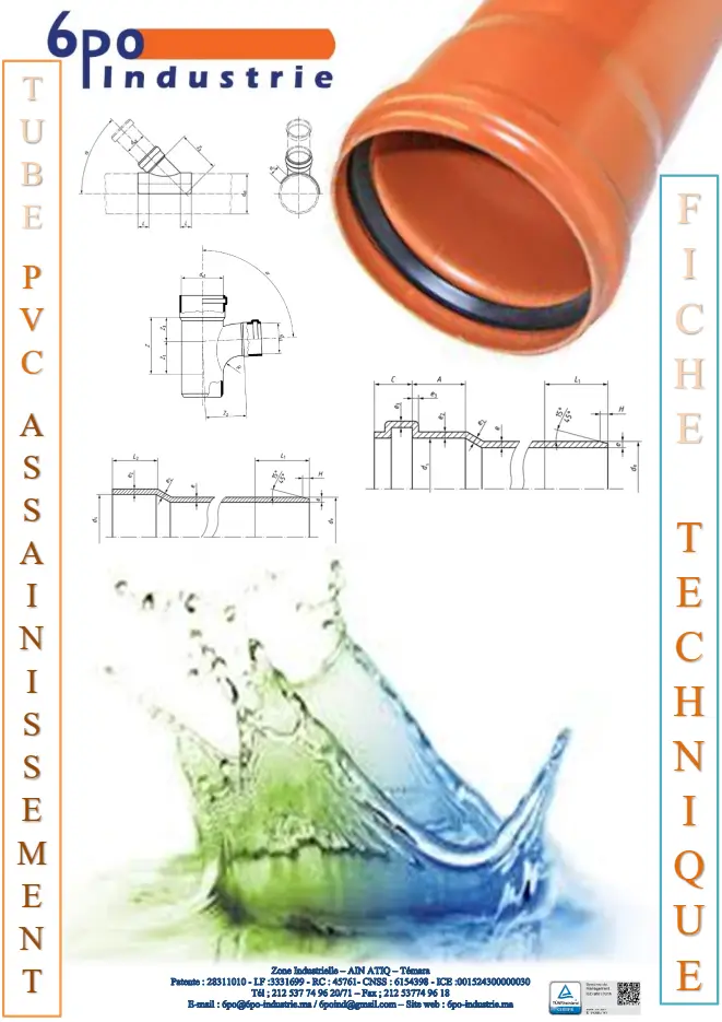 Domaine d’application : Les tubes en PVC non plastifié, destinés aux canalisations d’assainissement et à l’évacuation des eaux usées sans pression